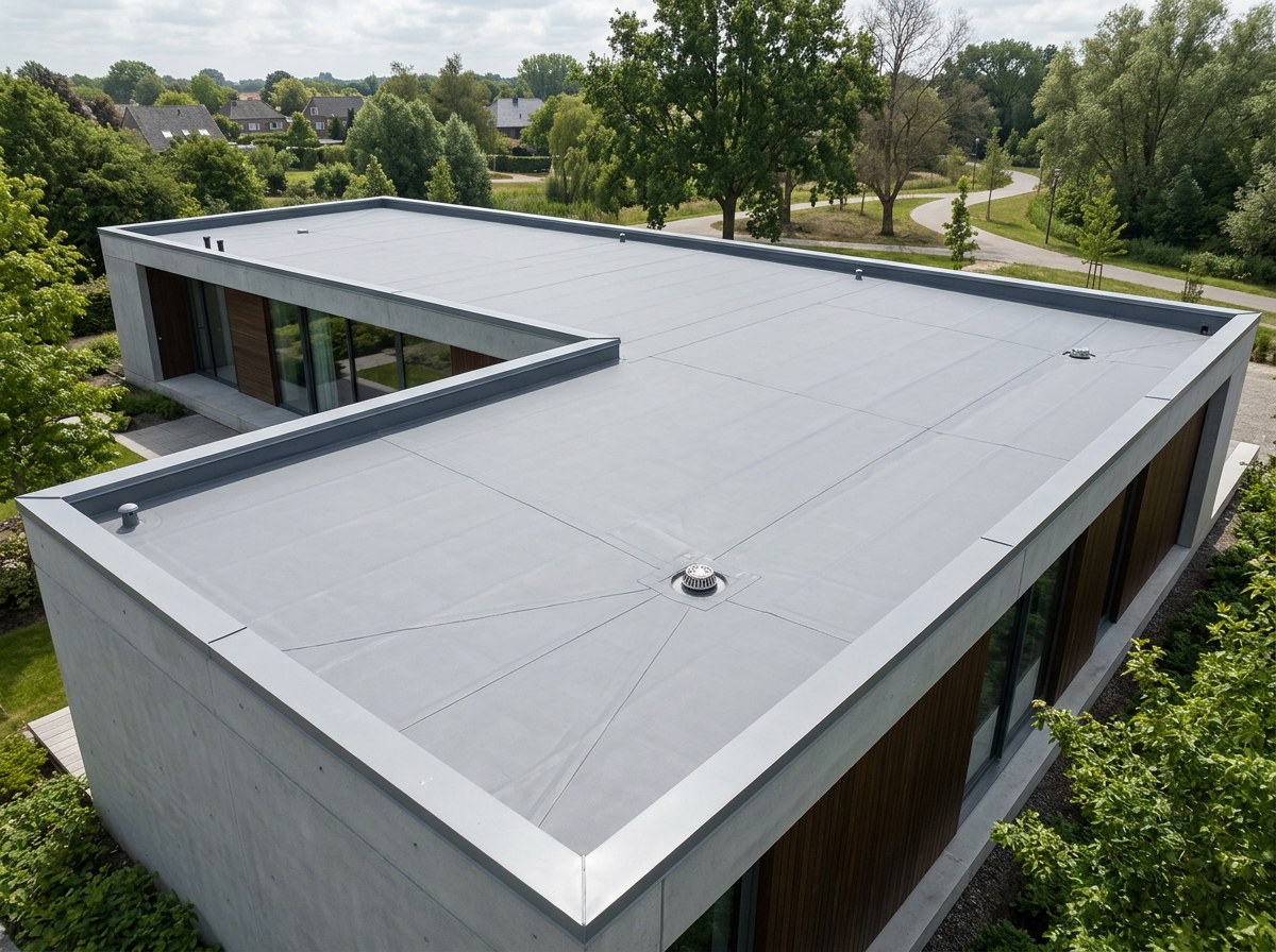 Плоской считается кровля с уклоном от 0° до 12° (от 0 до ~21%). В отличие от скатных крыш, где уклон задается стропильной системой, на плоской кровле его формируют несколькими способами: керамзитобетонной стяжкой переменной толщины, клиновидными плитами теплоизоляции или уклонообразующим слоем из лёгкого бетона.